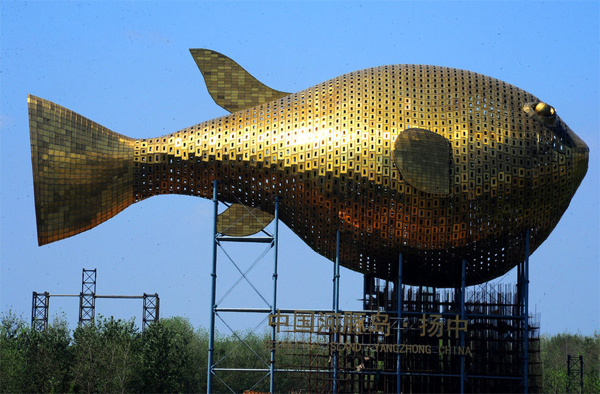 根據官方的介紹,河豚塔目前是國內最大的異形鋼結構城市雕塑,體積則創(chuàng)下世界之最,正在申報吉尼斯世界紀錄。