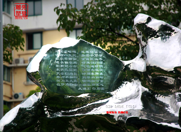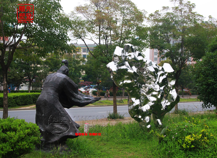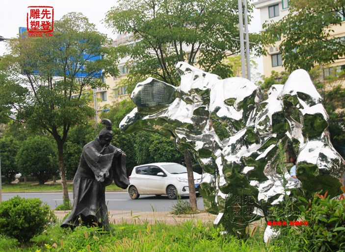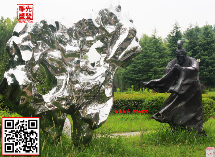 米芾拜石太湖石鏡面光雕塑現貨人物銅雕